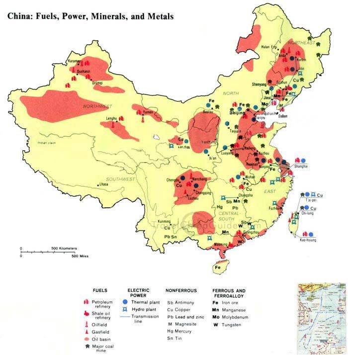 Many dozen deposits of varying size throughout the PRC, five thought to be commercially viable.
